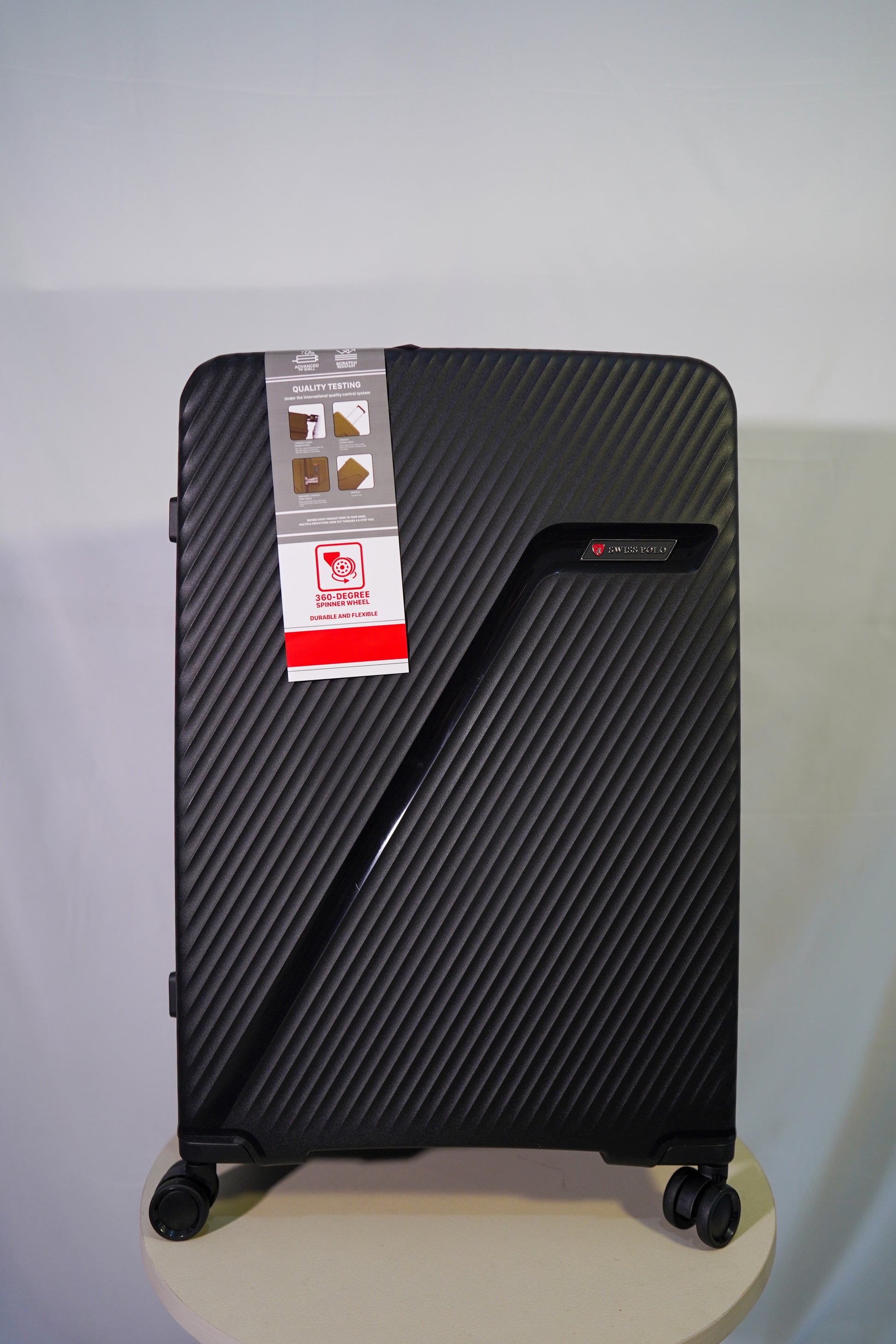 "Expertly designed and crafted, the Swiss Polo - BLACK suitcase exudes style and sophistication. Made with precision and attention to detail, this suitcase is perfect for the modern traveler looking for both functionality and fashion. Stay stylish and organized on your next trip with this sleek suitcase."