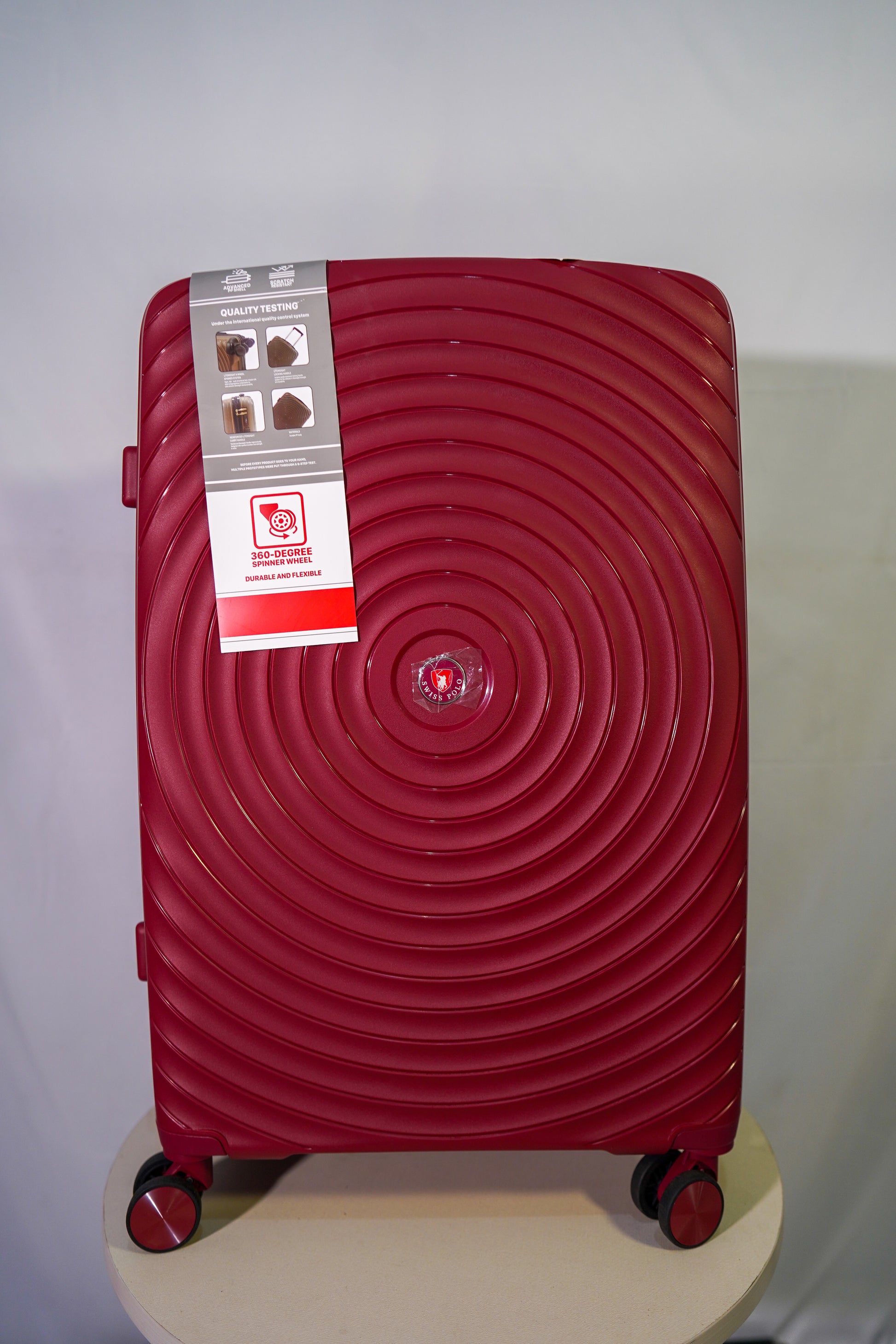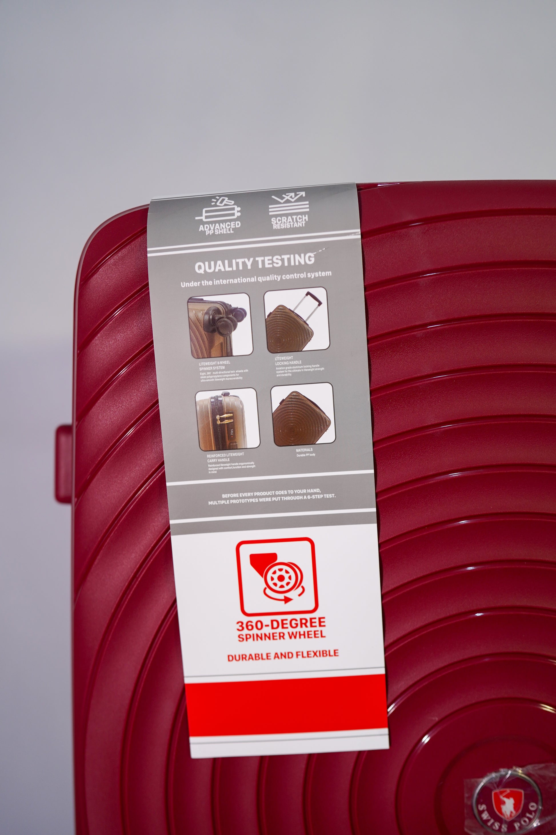 "Expertly designed and crafted, the Swiss Polo - RED suitcase exudes style and sophistication. Made with precision and attention to detail, this suitcase is perfect for the modern traveler looking for both functionality and fashion. Stay stylish and organized on your next trip with this sleek suitcase."